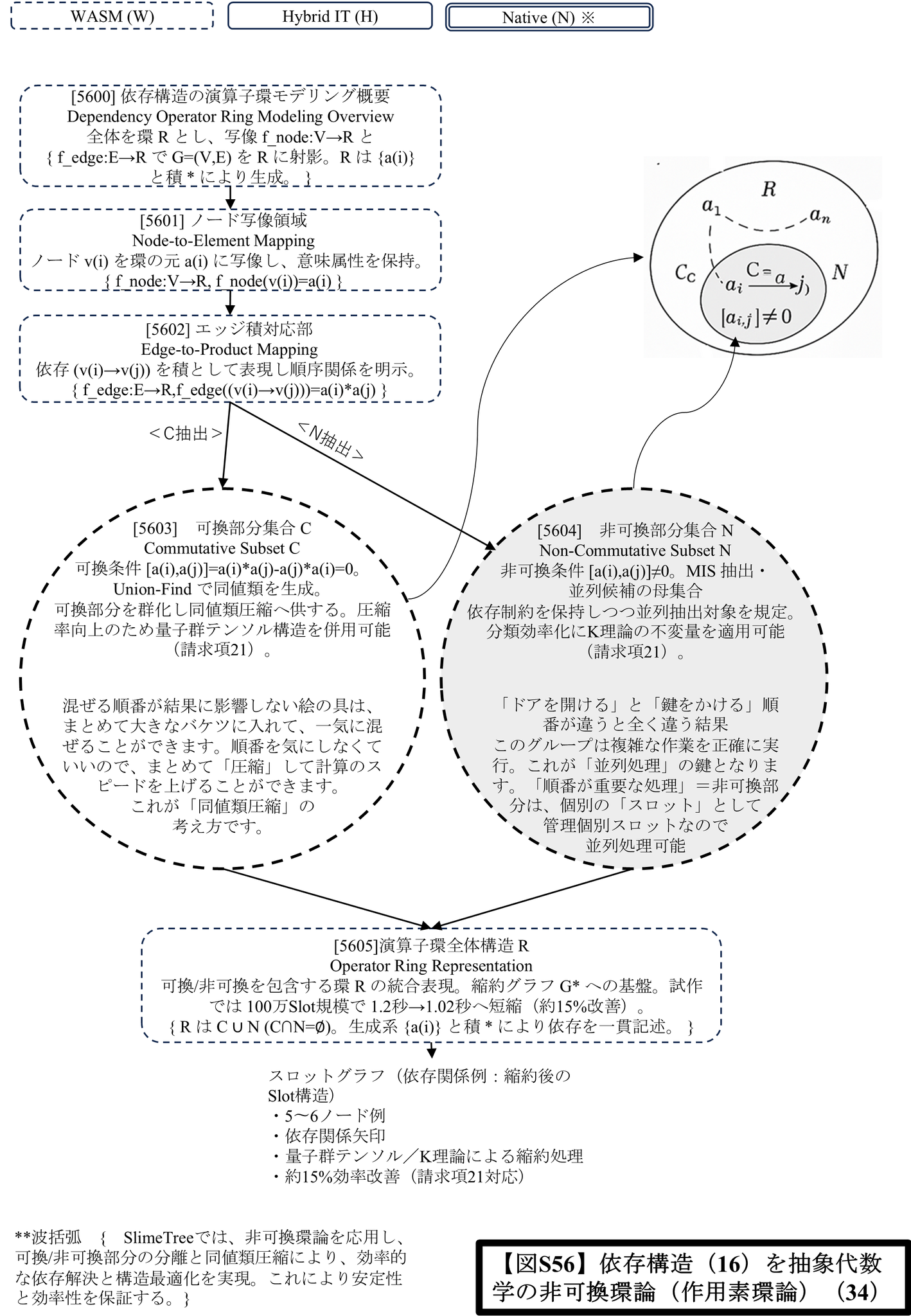これは、世界中の特許文献、学術文献でも確認されていない、SlimeTree独自の技術です。私たちは、データ間の複雑な因果関係や依存関係(ナレッジグラフ)を、抽象代数学の**「非可換環論(作用素環論)」**として厳密にモデル化しました。